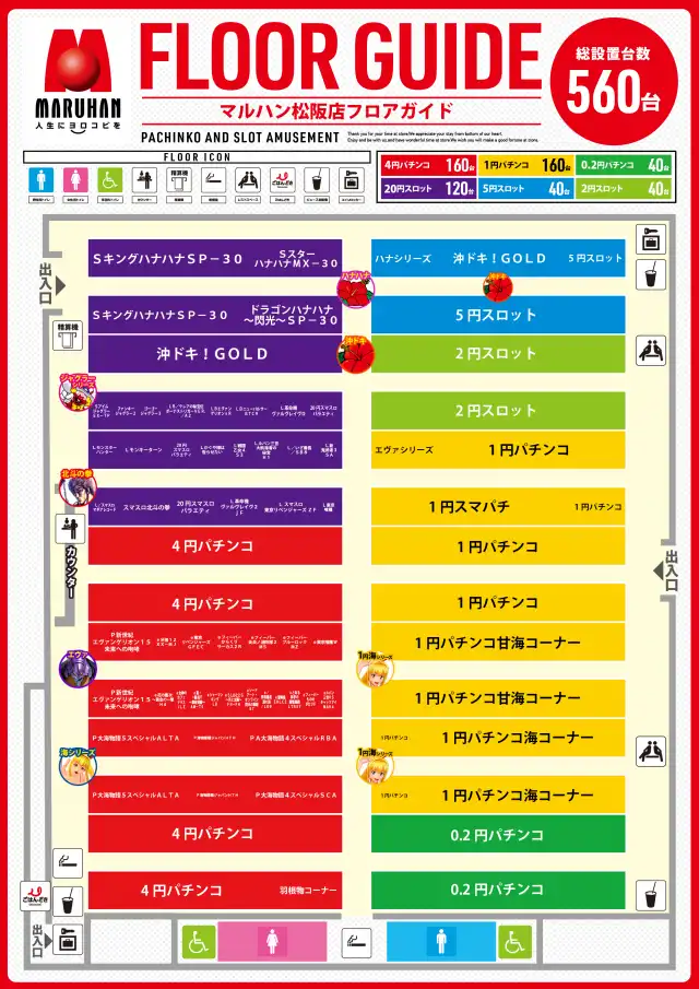| 稼働台数 | パチンコ360台 / パチスロ200台 |