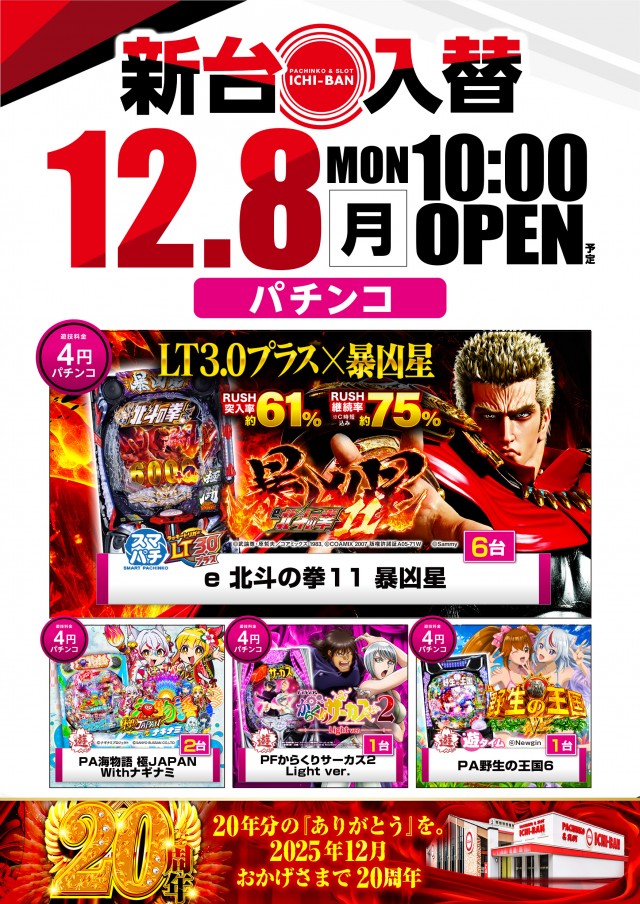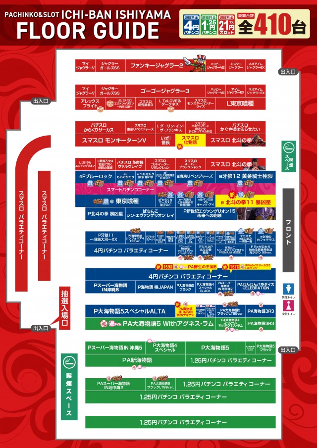 | 稼働台数 | パチンコ269台 / パチスロ142台 |