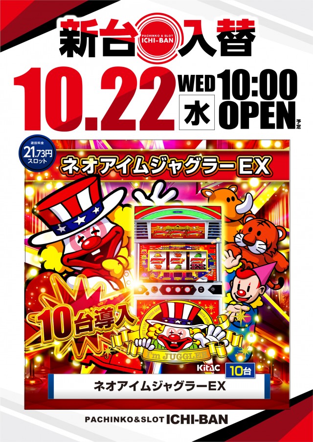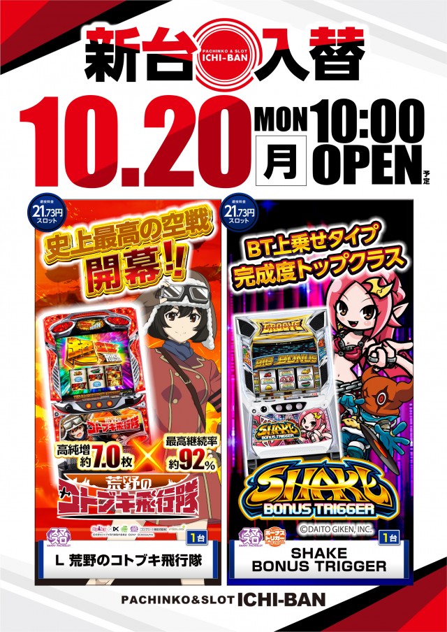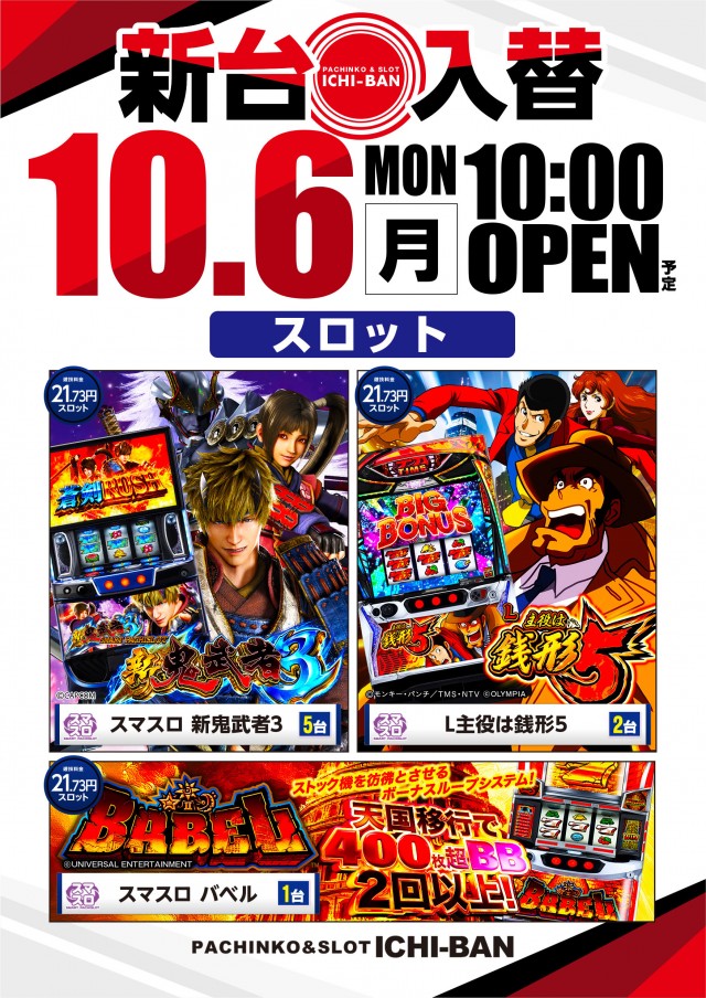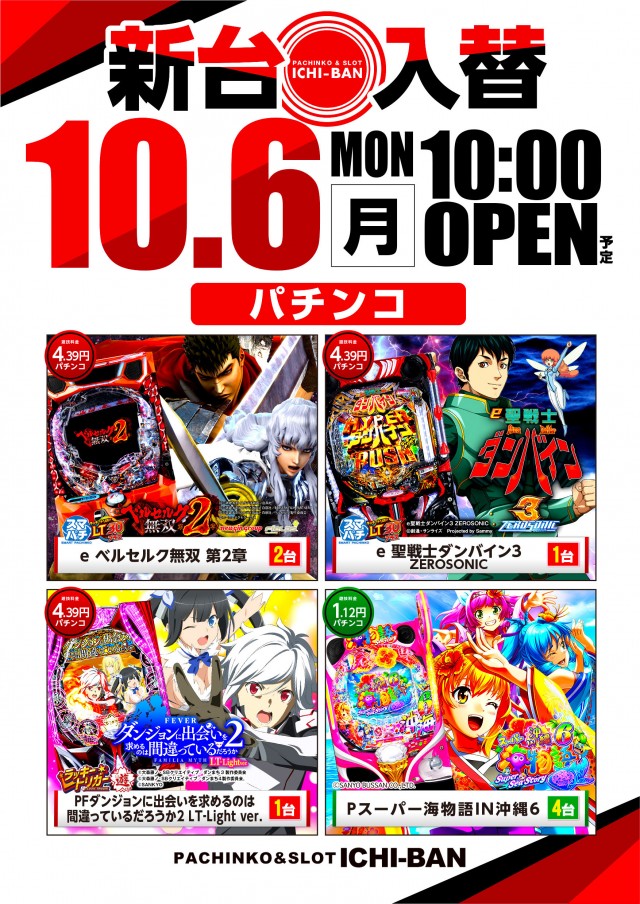 | 営業時間 | 10:00 ~ 23:00(定休日:年中無休) (22:45 遊技ストップ) |
