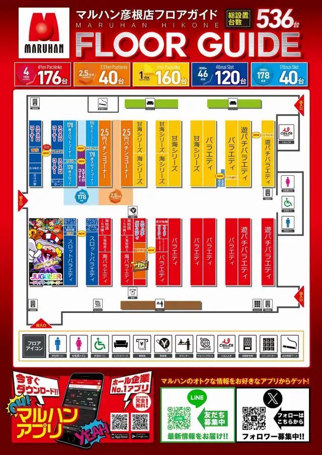 | 稼働台数 | パチンコ376台 / パチスロ160台 |