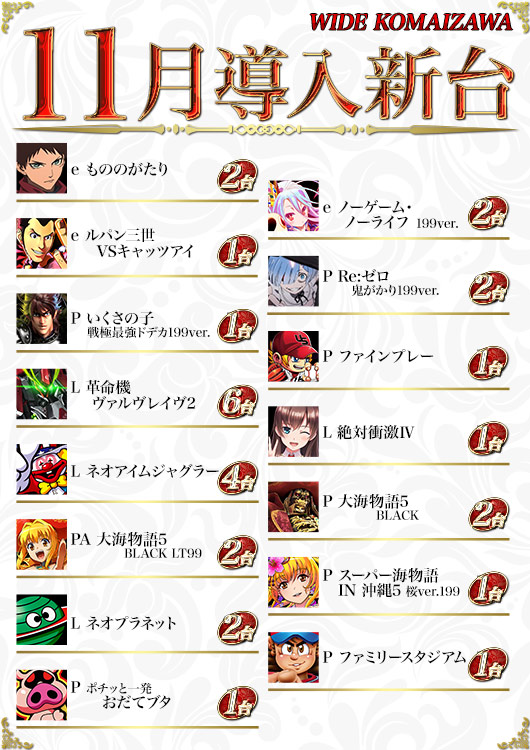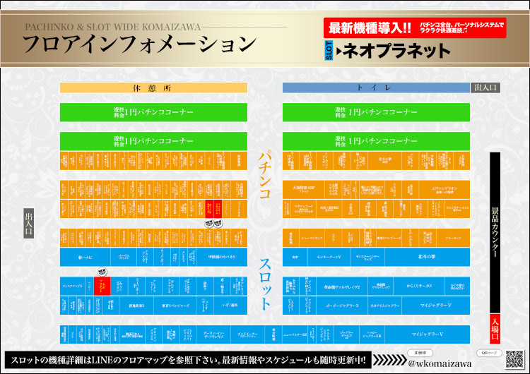 | 稼働台数 | パチンコ264台 / パチスロ180台 |