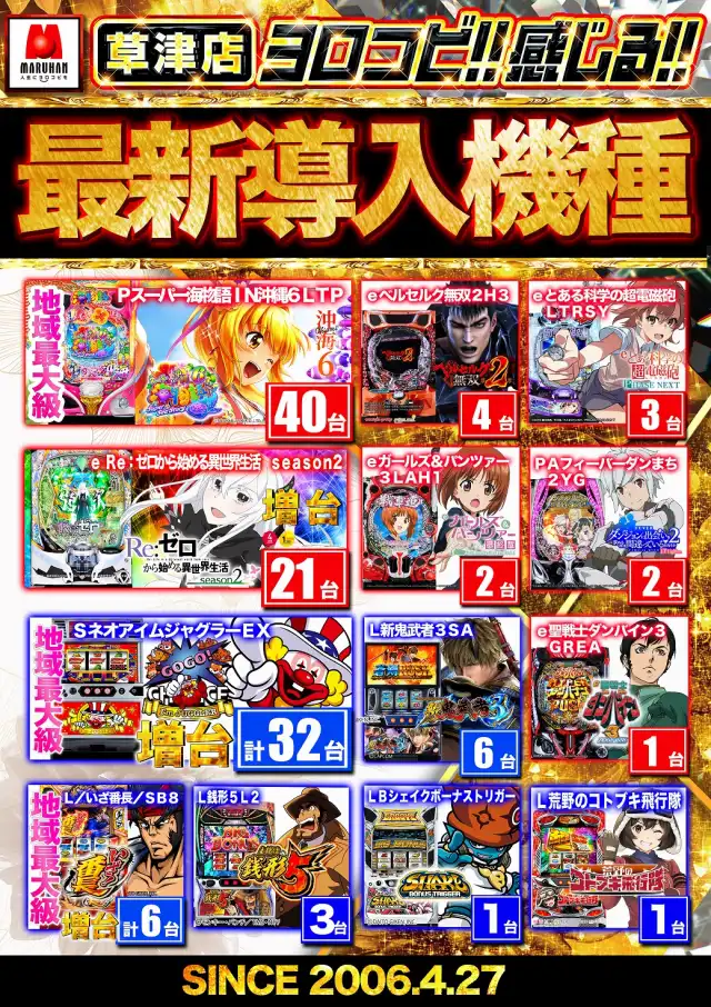 | 稼働台数 | パチンコ470台 / パチスロ315台 |