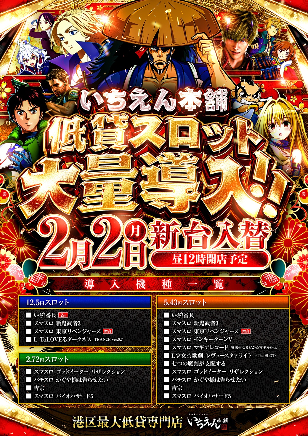 ☆地域最大1円パチンコ☆地域唯一☆12.5スロ導入☆5円スロット☆2.5円スロット