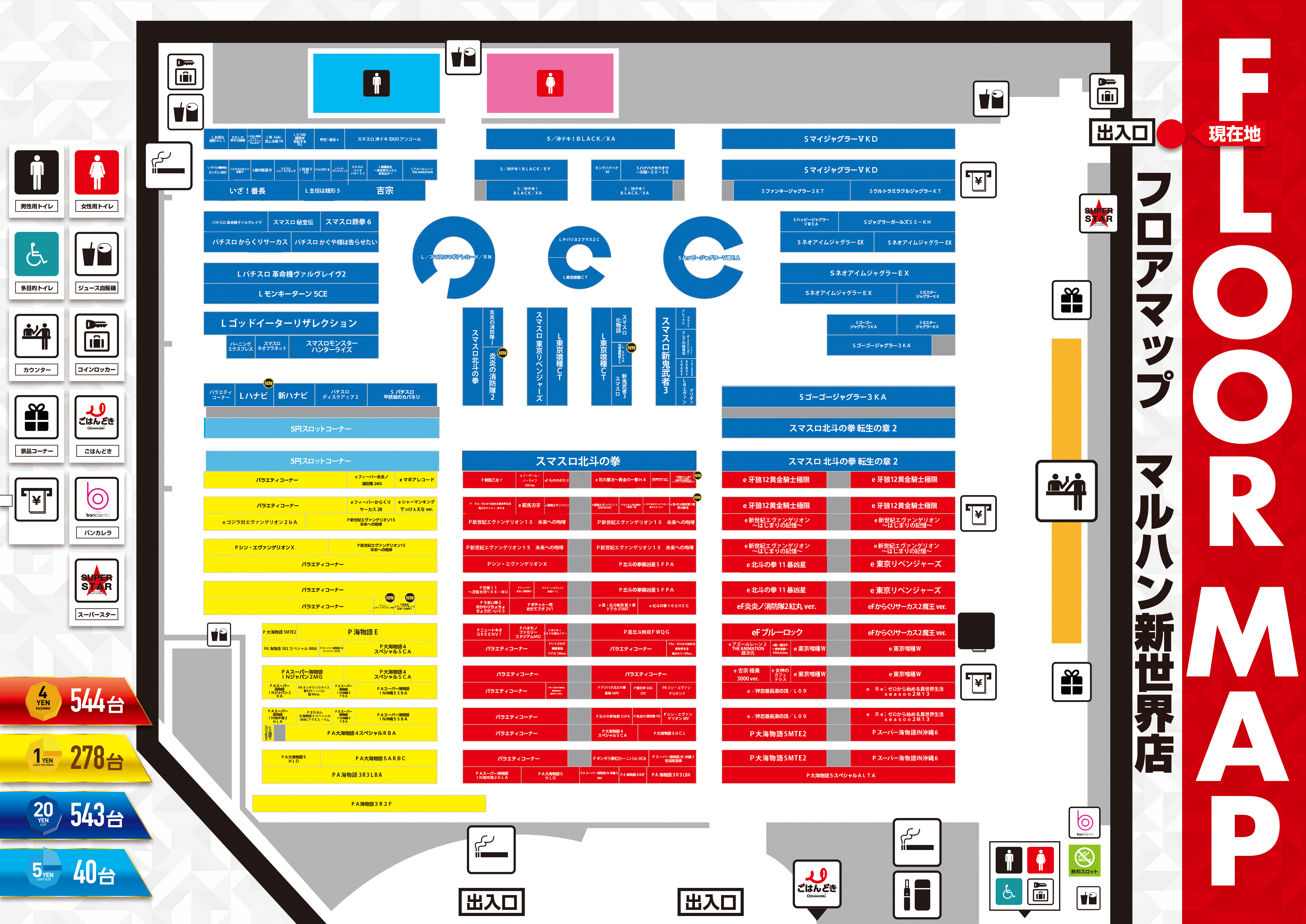 | 稼働台数 | パチンコ822台 / パチスロ583台 |