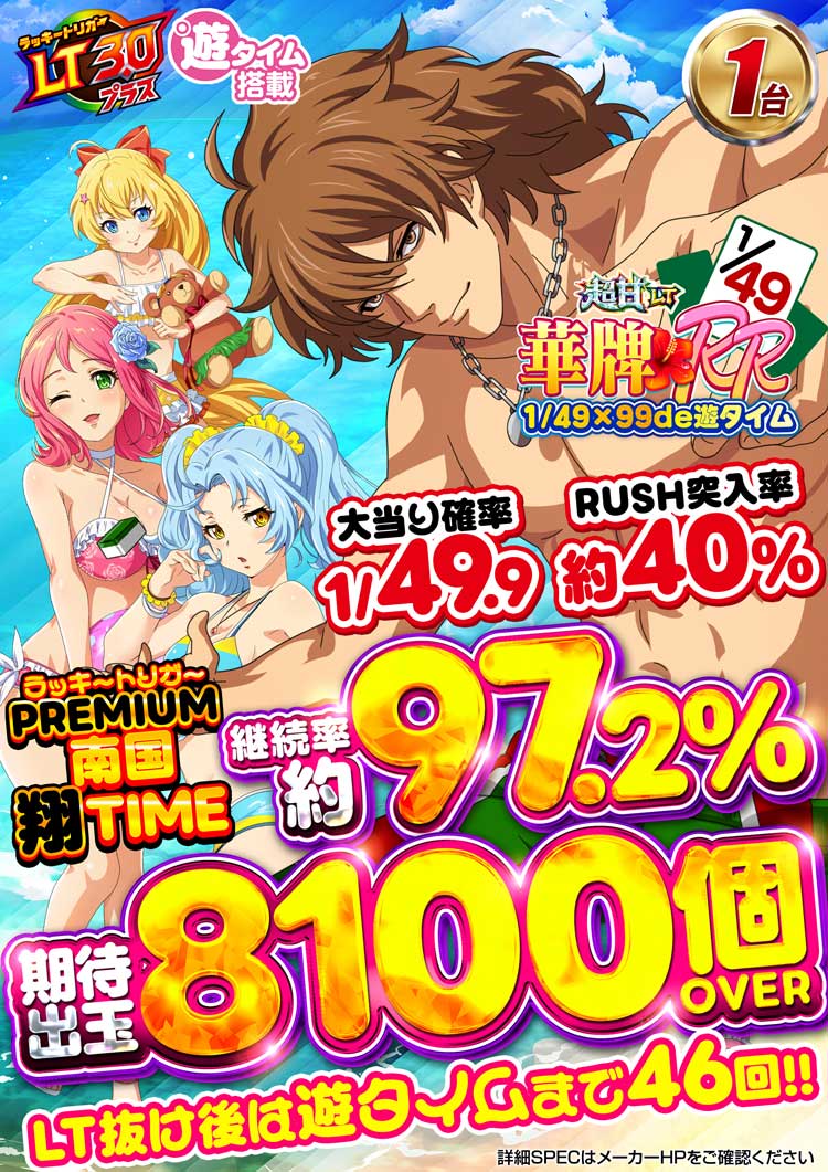 | 稼働台数 | パチンコ876台 / パチスロ494台 |