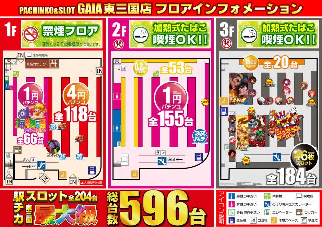 | 稼働台数 | パチンコ392台 / パチスロ204台 |