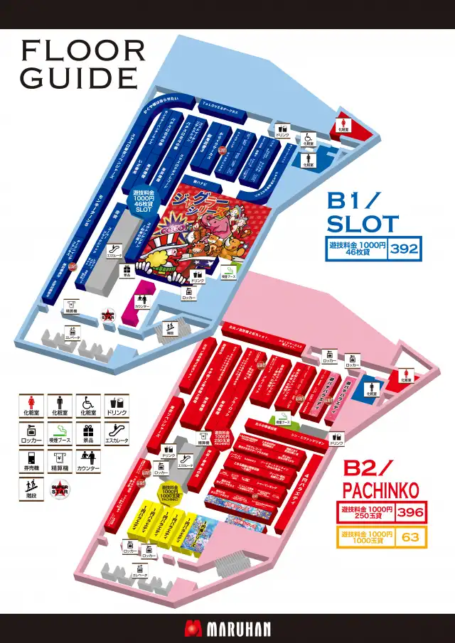 | 稼働台数 | パチンコ459台 / パチスロ392台 |