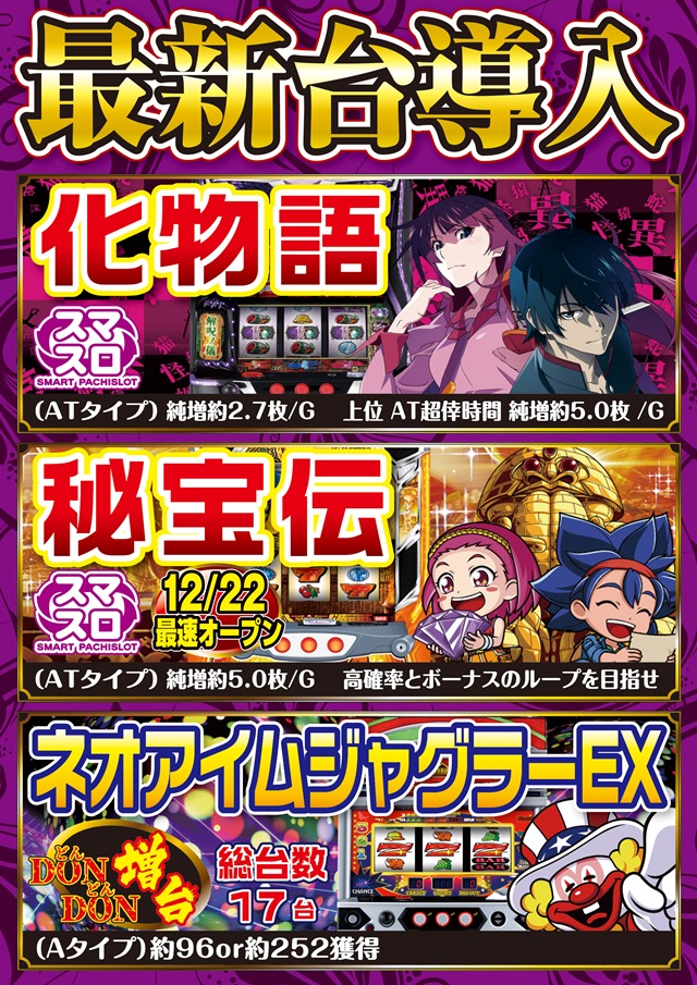 | 稼働台数 | パチンコ740台 / パチスロ638台 |