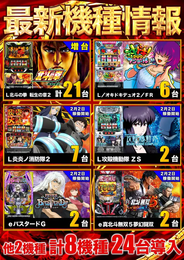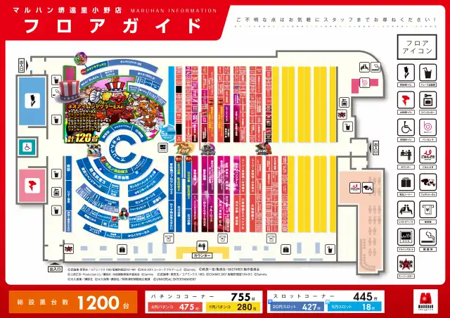 | 稼働台数 | パチンコ755台 / パチスロ445台 |