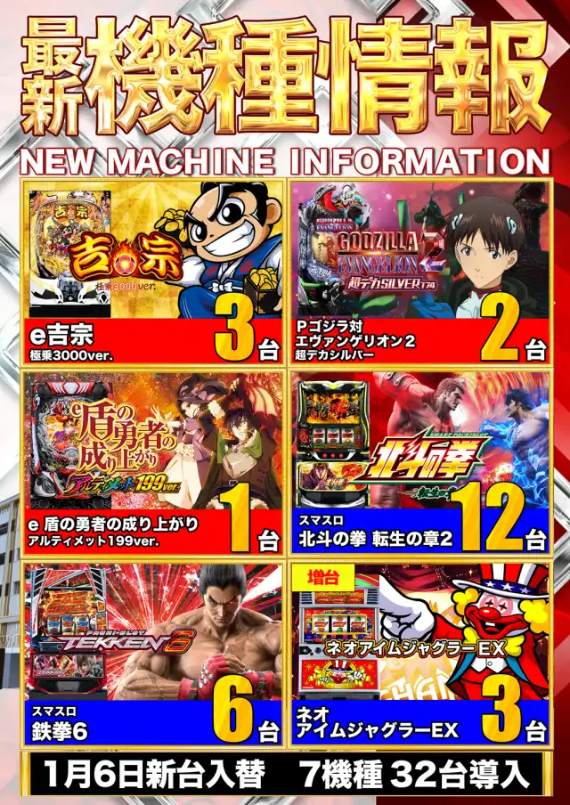 | 稼働台数 | パチンコ640台 / パチスロ363台 |