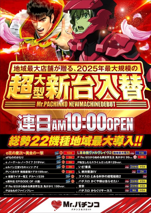 | 稼働台数 | パチンコ800台 / パチスロ394台 |