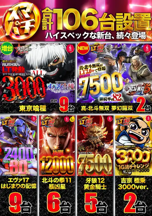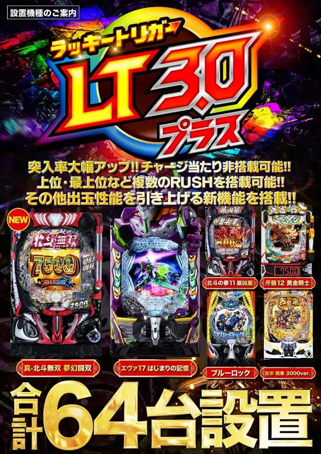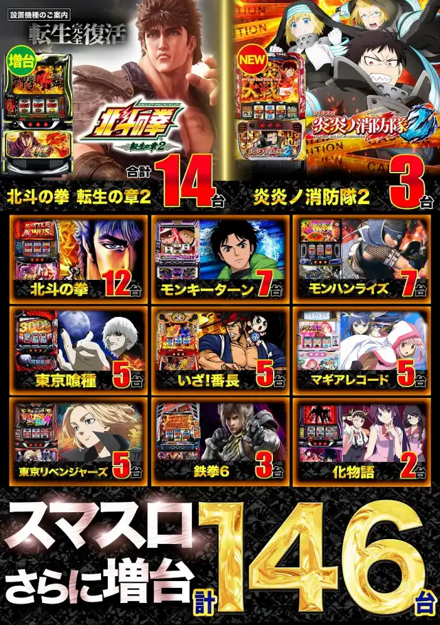| 稼働台数 | パチンコ487台 / パチスロ250台 |