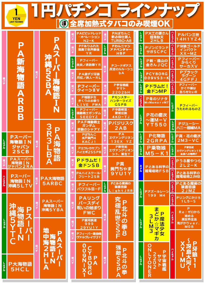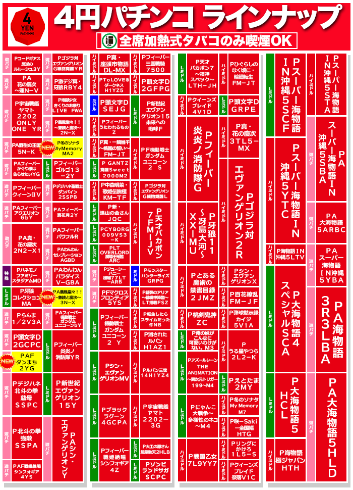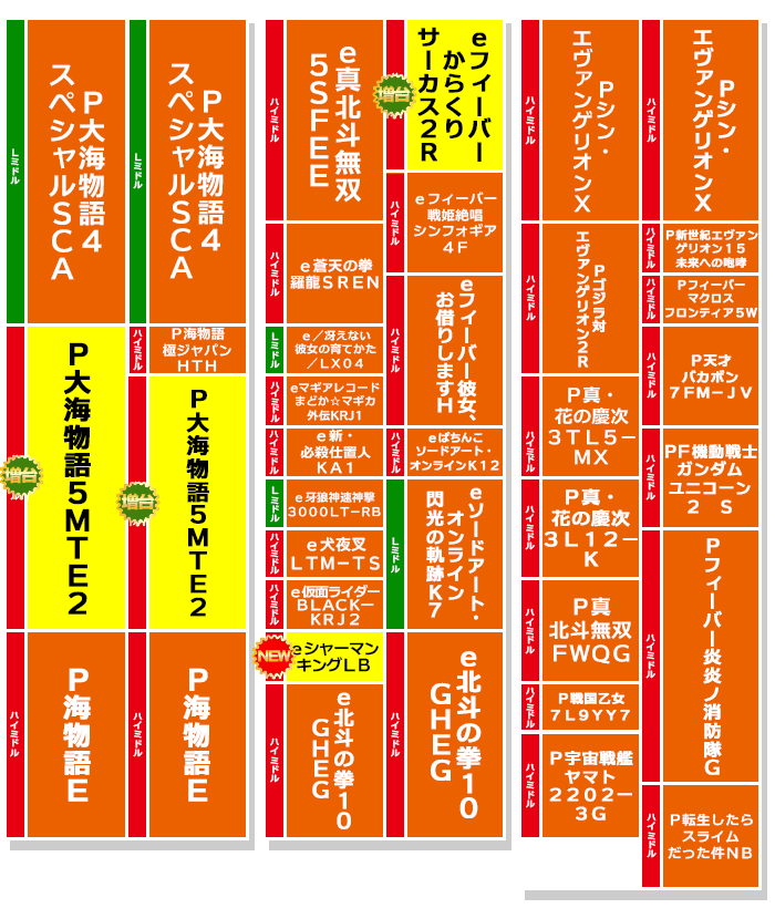 | 稼働台数 | パチンコ523台 / パチスロ279台 |