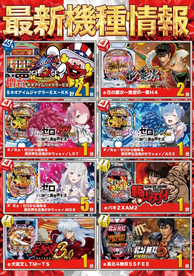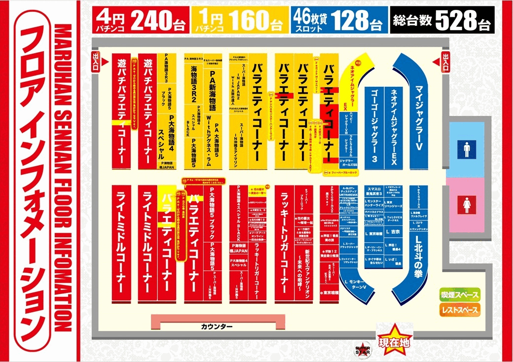 | 稼働台数 | パチンコ400台 / パチスロ128台 |