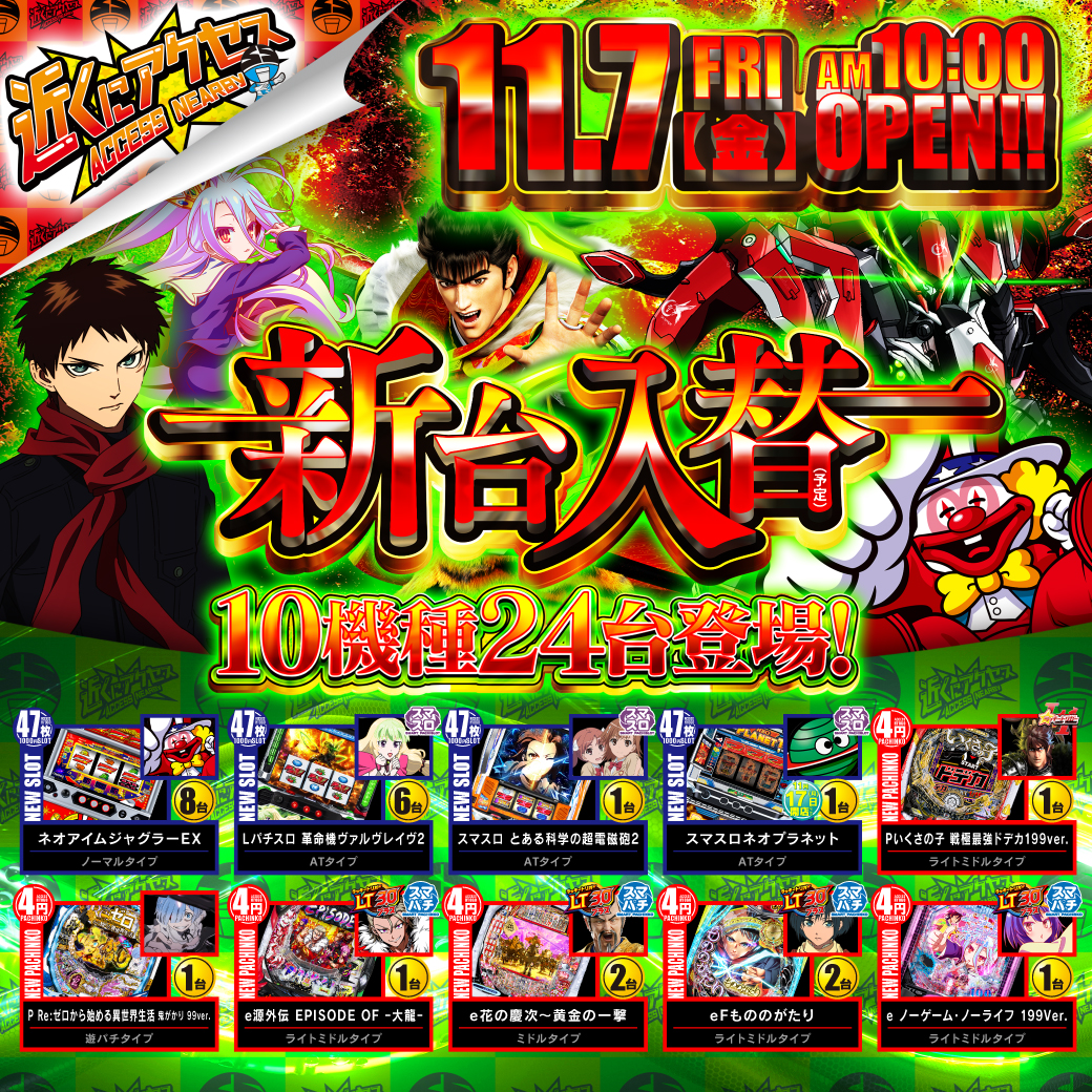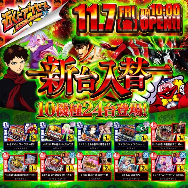| 稼働台数 | パチンコ311台 / パチスロ203台 |