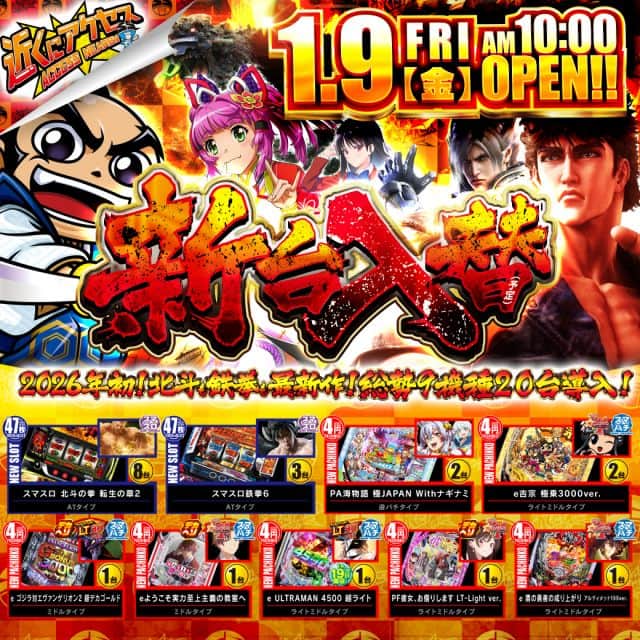 | 稼働台数 | パチンコ314台 / パチスロ203台 |