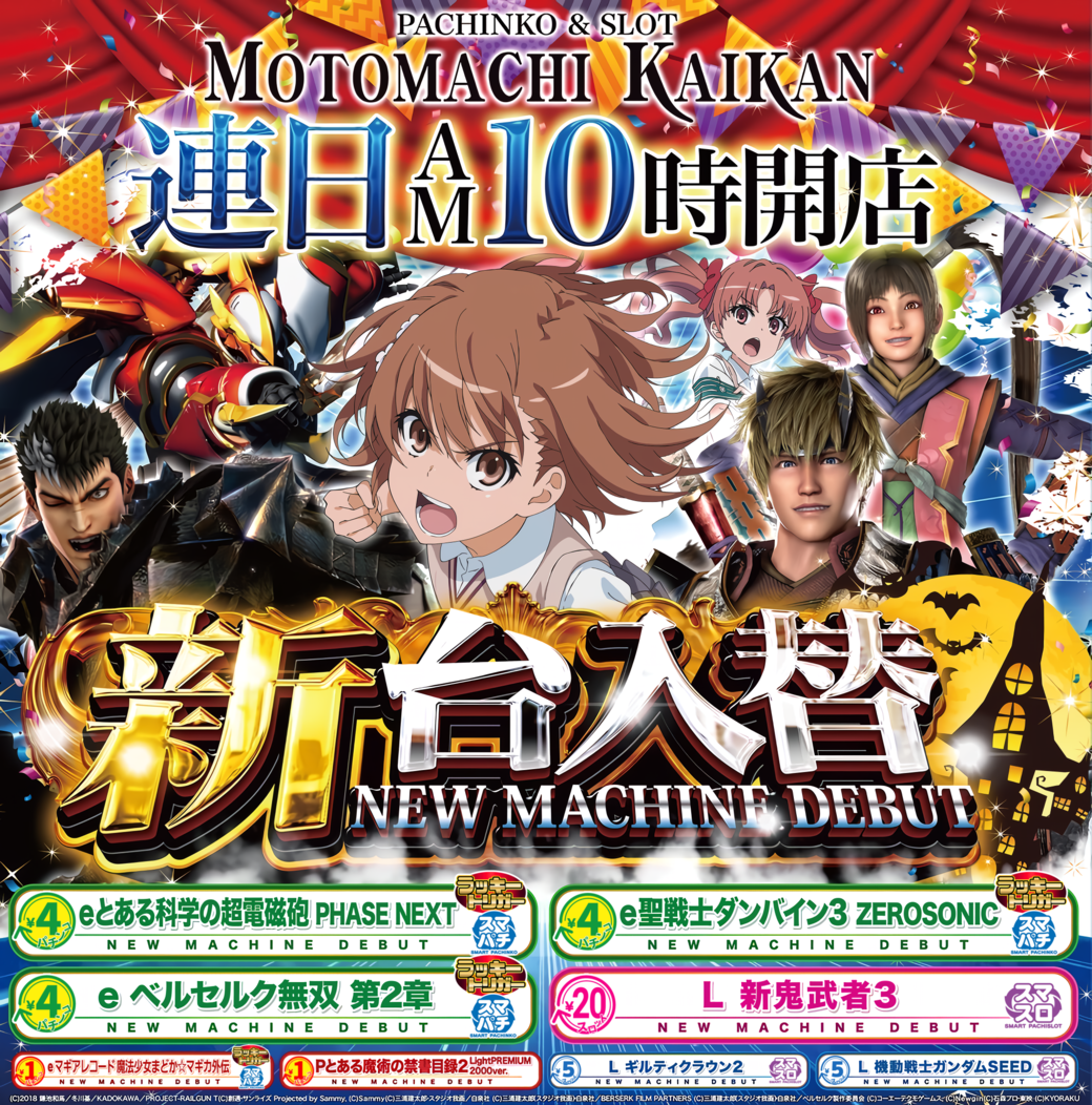 | 営業時間 | 10:00 ~ 22:45(定休日:年中無休(新台入替時のみお休みします)) |