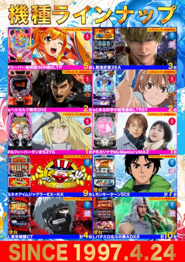 稼働台数 | パチンコ329台 / パチスロ168台 |