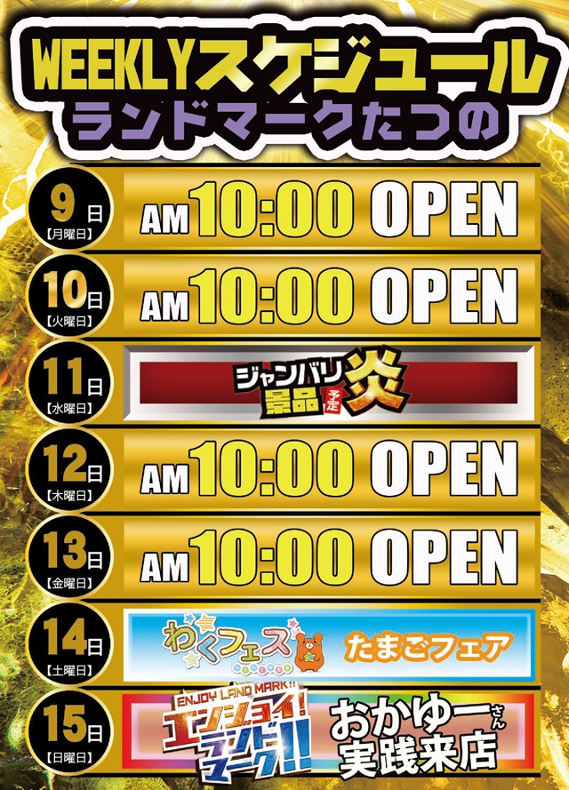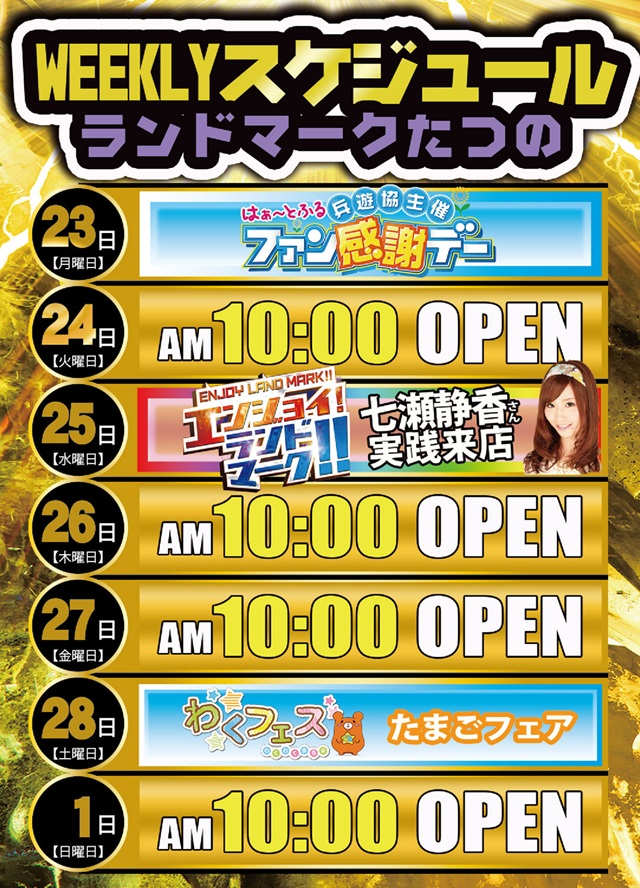 | 営業時間 | 10:00 ~ 22:50(定休日:年中無休(新台入替日は除く)) |