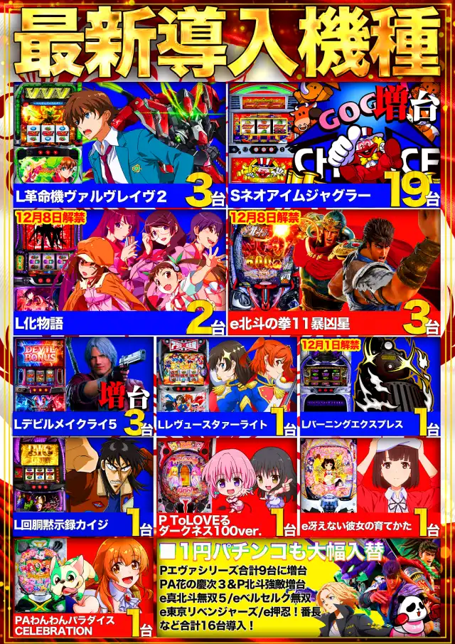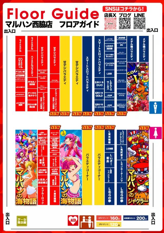 | 稼働台数 | パチンコ277台 / パチスロ197台 |