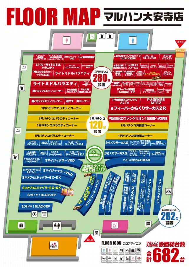 | 稼働台数 | パチンコ400台 / パチスロ282台 |