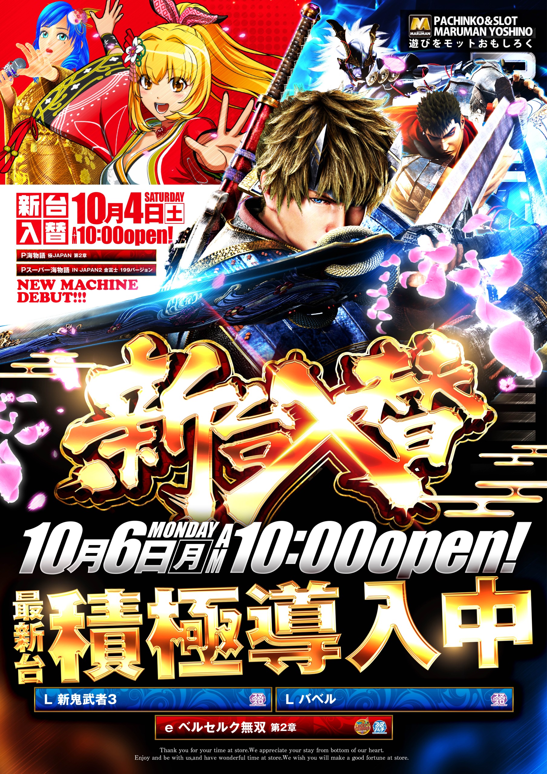 | 営業時間 | 10:00 ~ 22:40(定休日:不定休) 会員様限定で22:50まで延長遊技が出来ます。 |