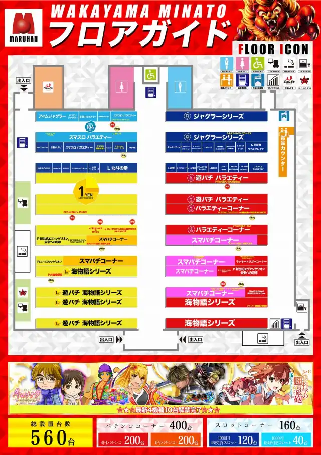 稼働台数 | パチンコ400台 / パチスロ160台 |