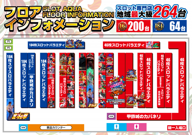 | 稼働台数 | パチスロ264台 |