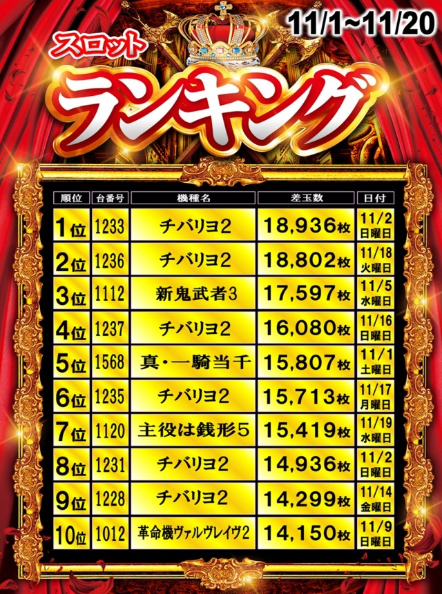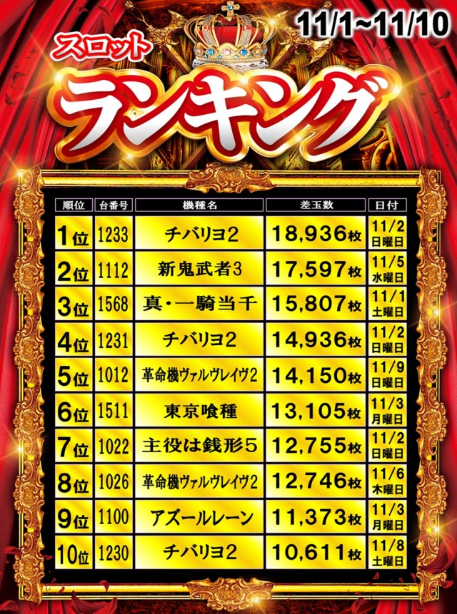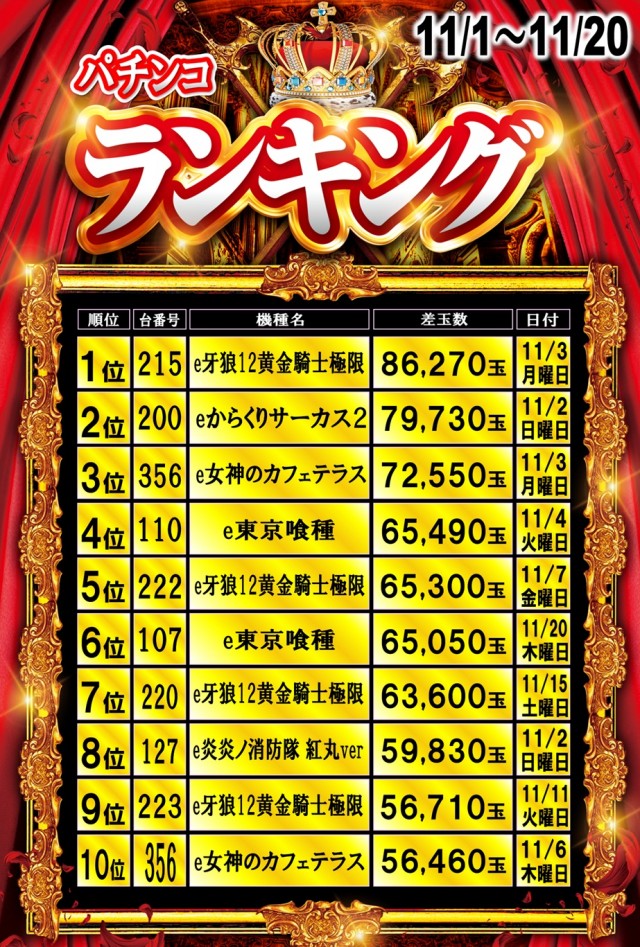| 稼働台数 | パチンコ476台 / パチスロ380台 |