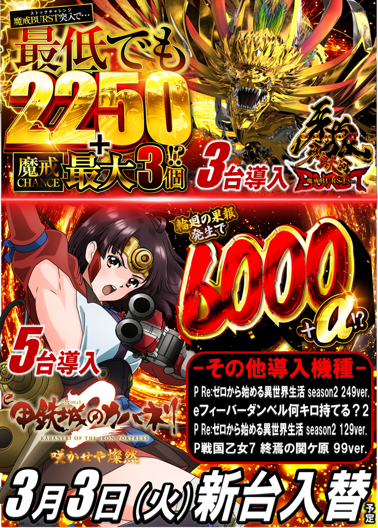 | 稼働台数 | パチンコ444台 / パチスロ400台 |