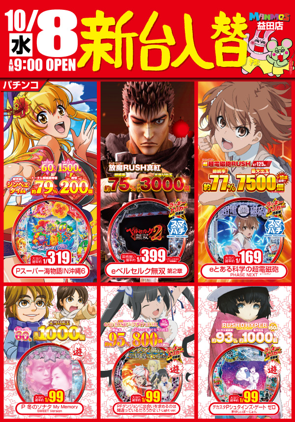 稼働台数 | パチンコ224台 / パチスロ213台 |