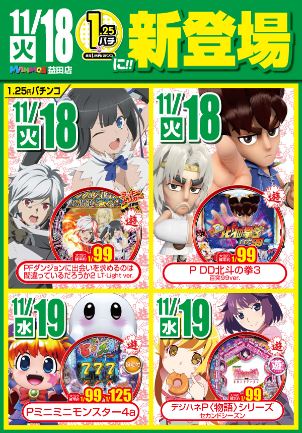 | 稼働台数 | パチンコ224台 / パチスロ213台 |
