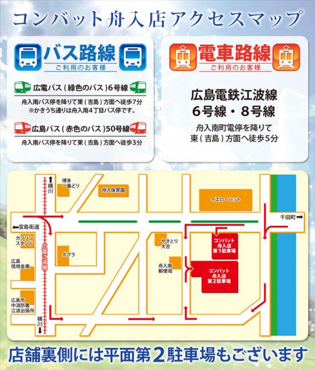 広島県舟入南5丁目2-44コンバット舟入店 MAP |