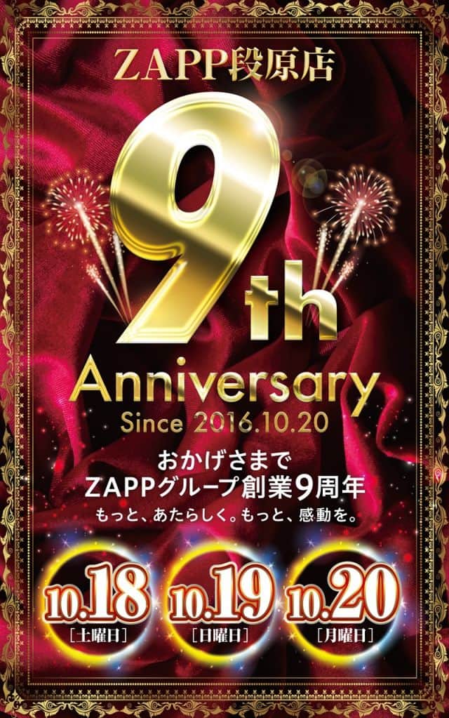 ZAPP段原店 グループ創業9周年 週末はZAPP段原店へGOGO♪