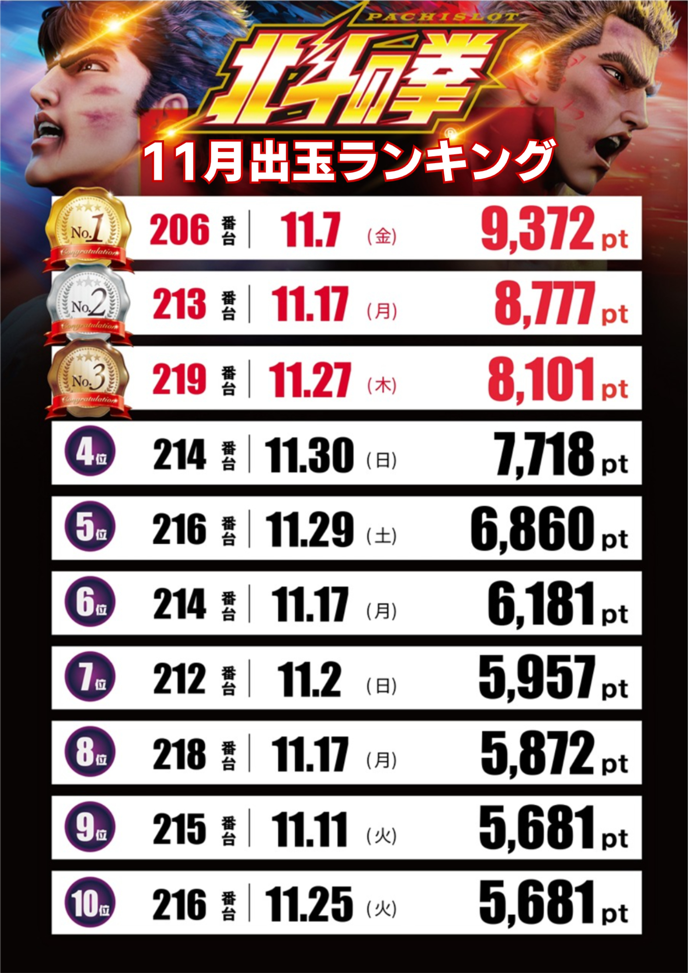 | 稼働台数 | パチンコ217台 / パチスロ243台 |