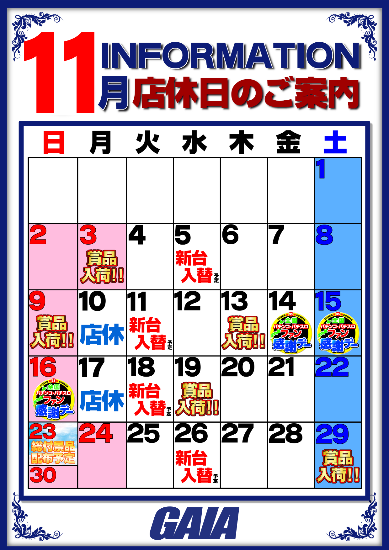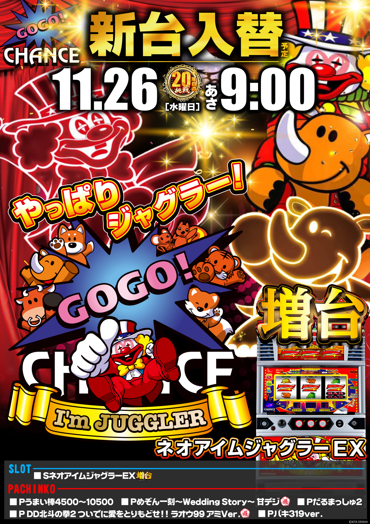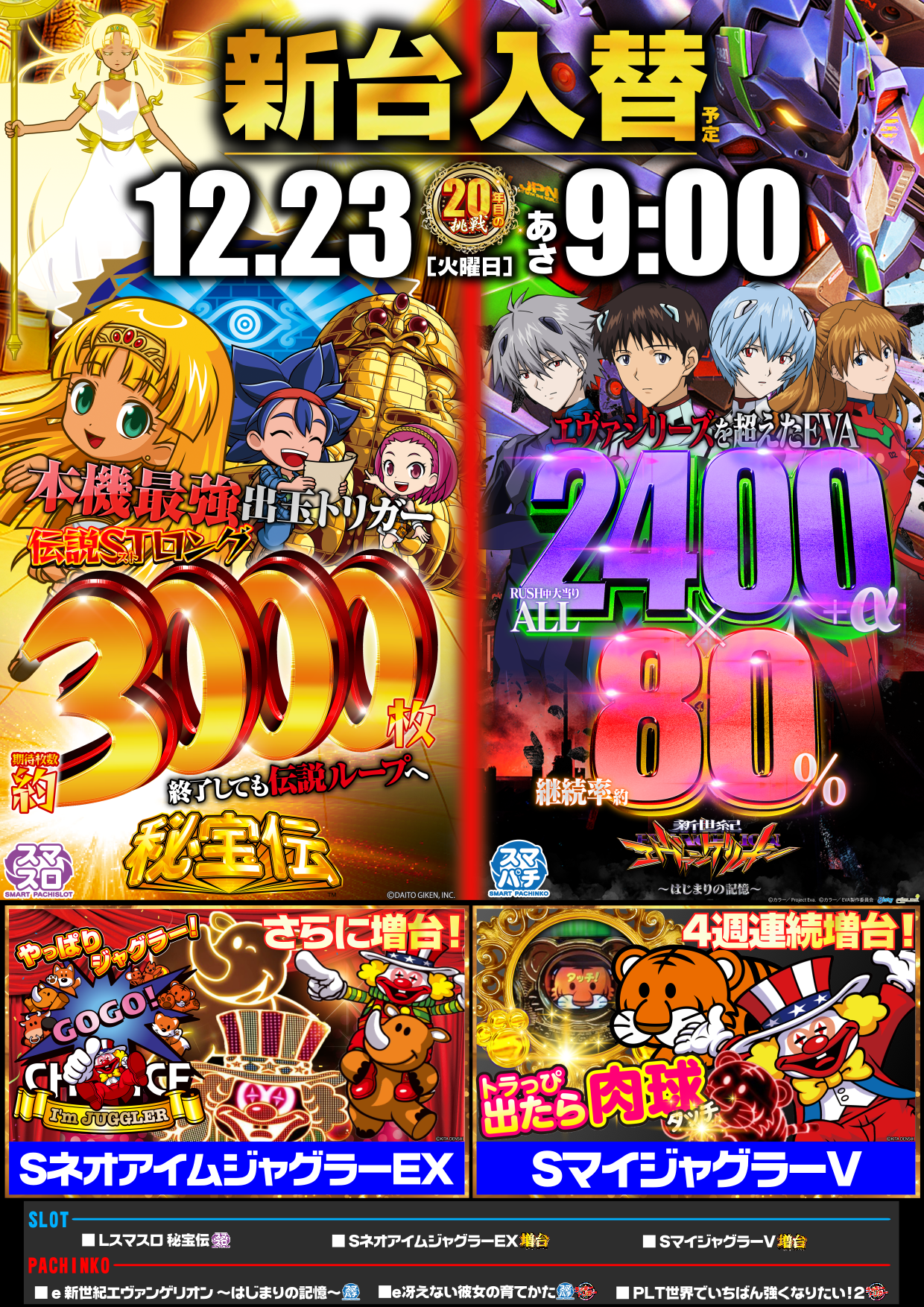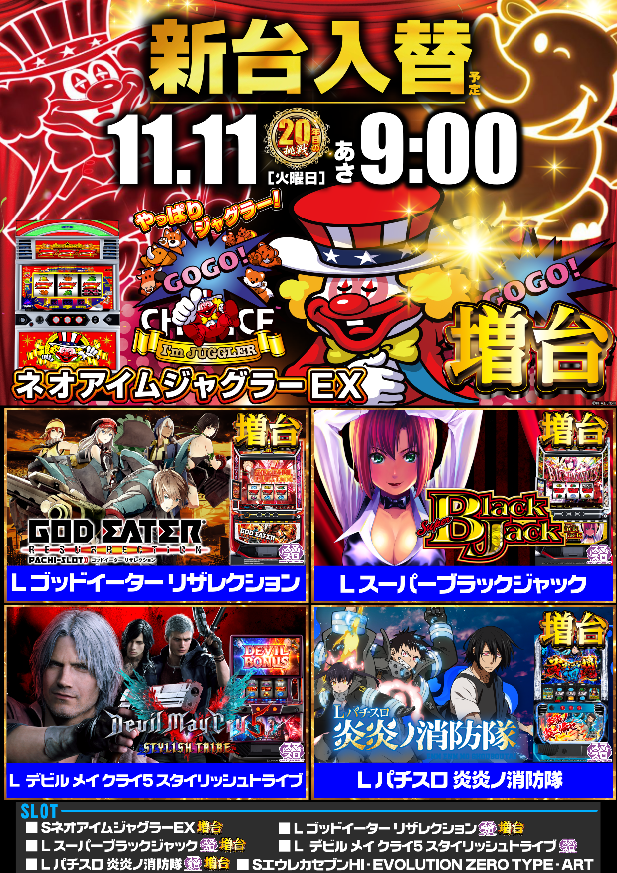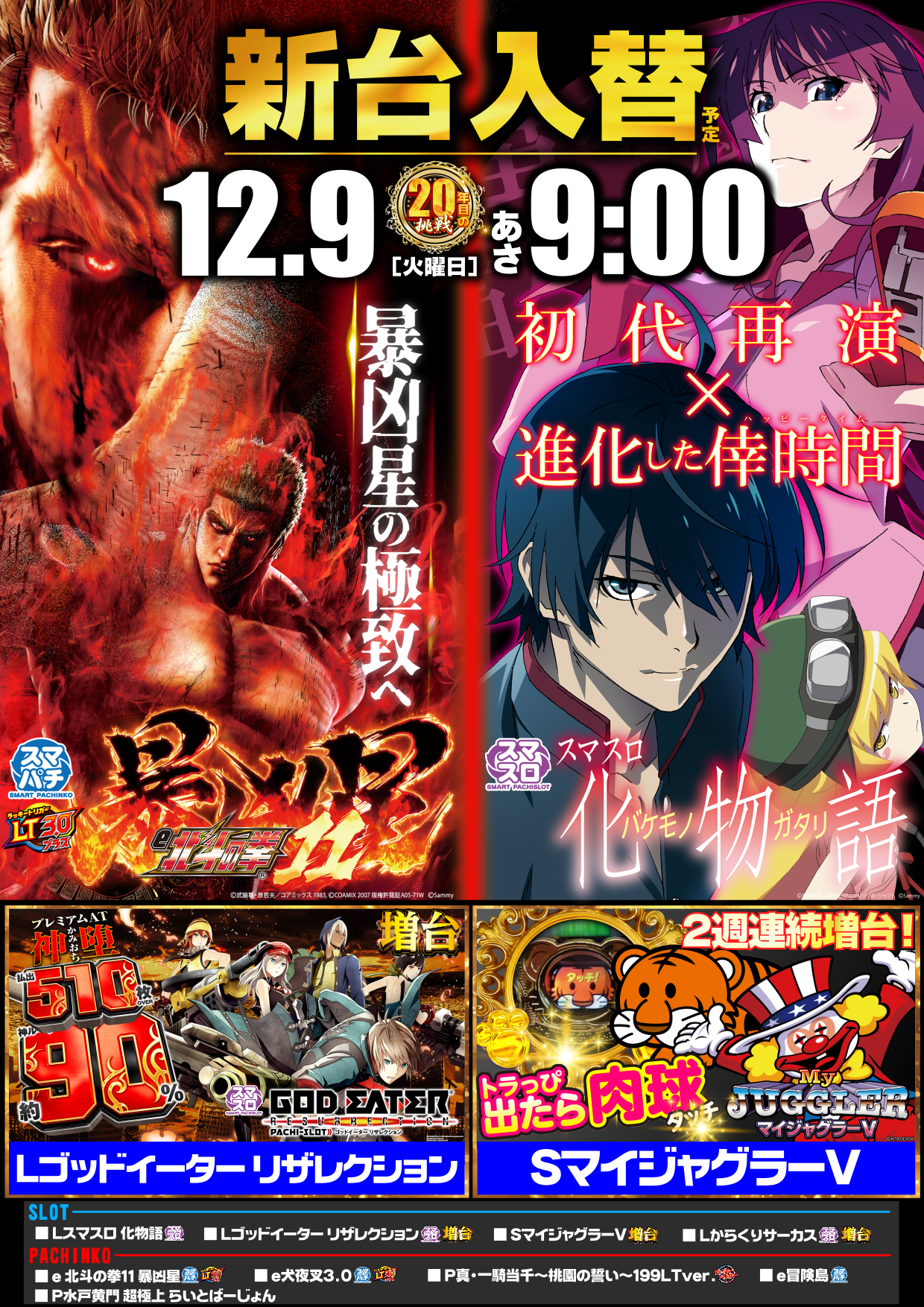 | 営業時間 | 09:00 ~ 22:45(定休日:不定休) 新台入替 |