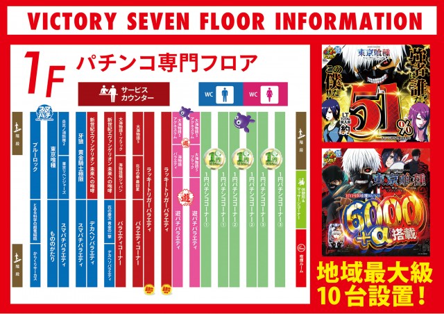| 稼働台数 | パチンコ360台 / パチスロ360台 |