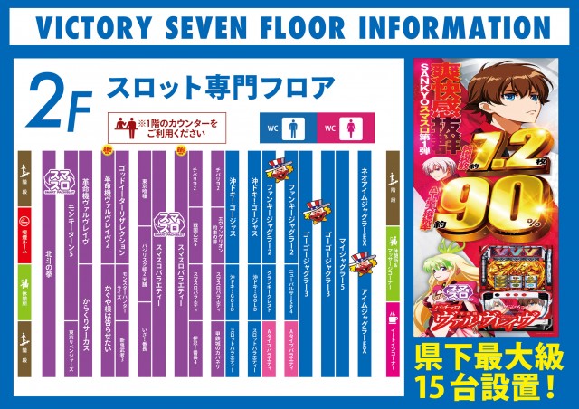 | 営業時間 | 09:00 ~ 22:50(定休日:月2回 木曜日(新台入替前日)) |