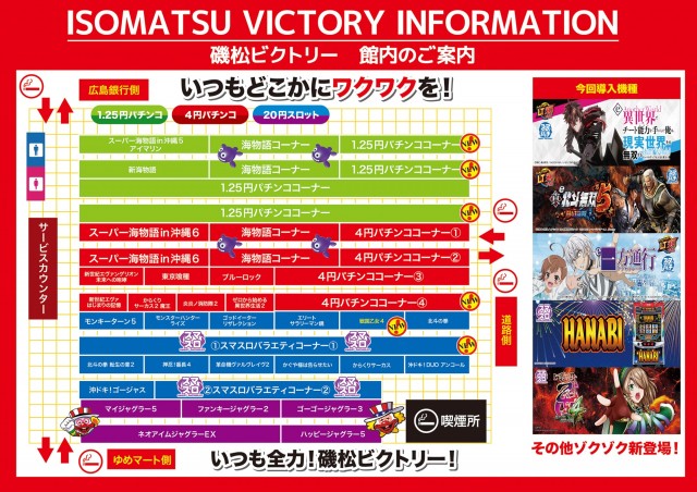 | 稼働台数 | パチンコ168台 / パチスロ114台 |