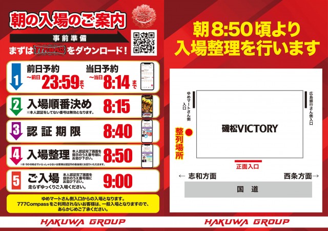 | 入場ルール | 並び順 (場合により 抽選 有) |