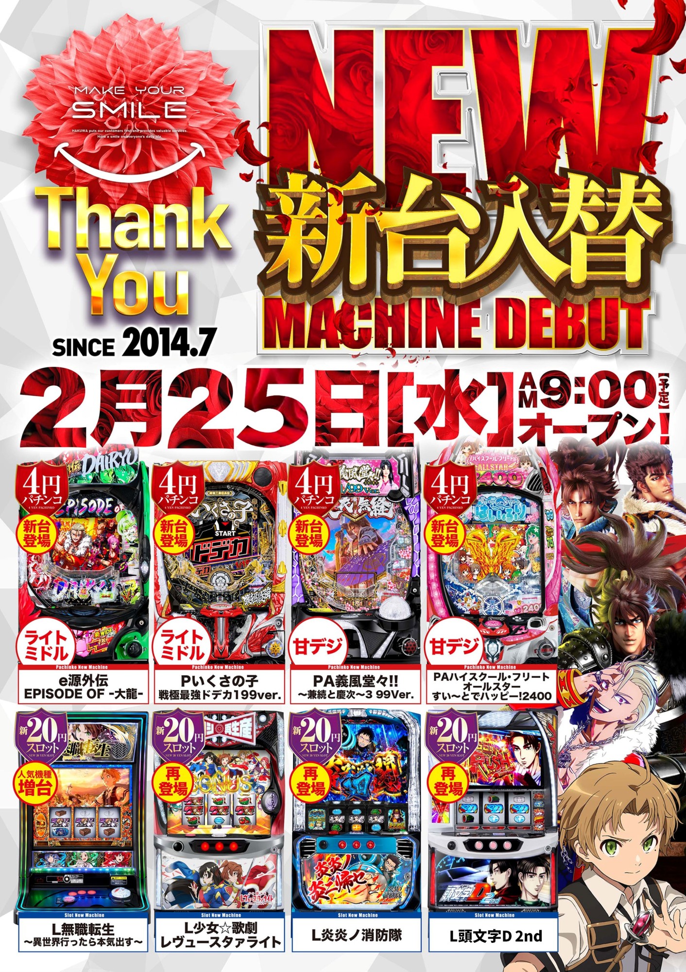 | 稼働台数 | パチスロ304台 |
