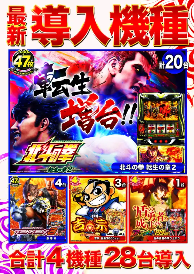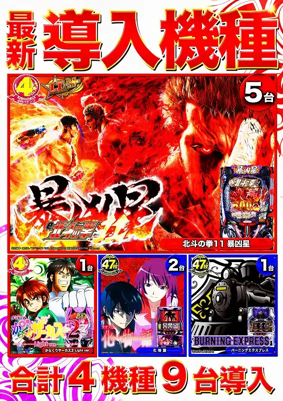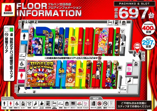 | 稼働台数 | パチンコ399台 / パチスロ297台 |