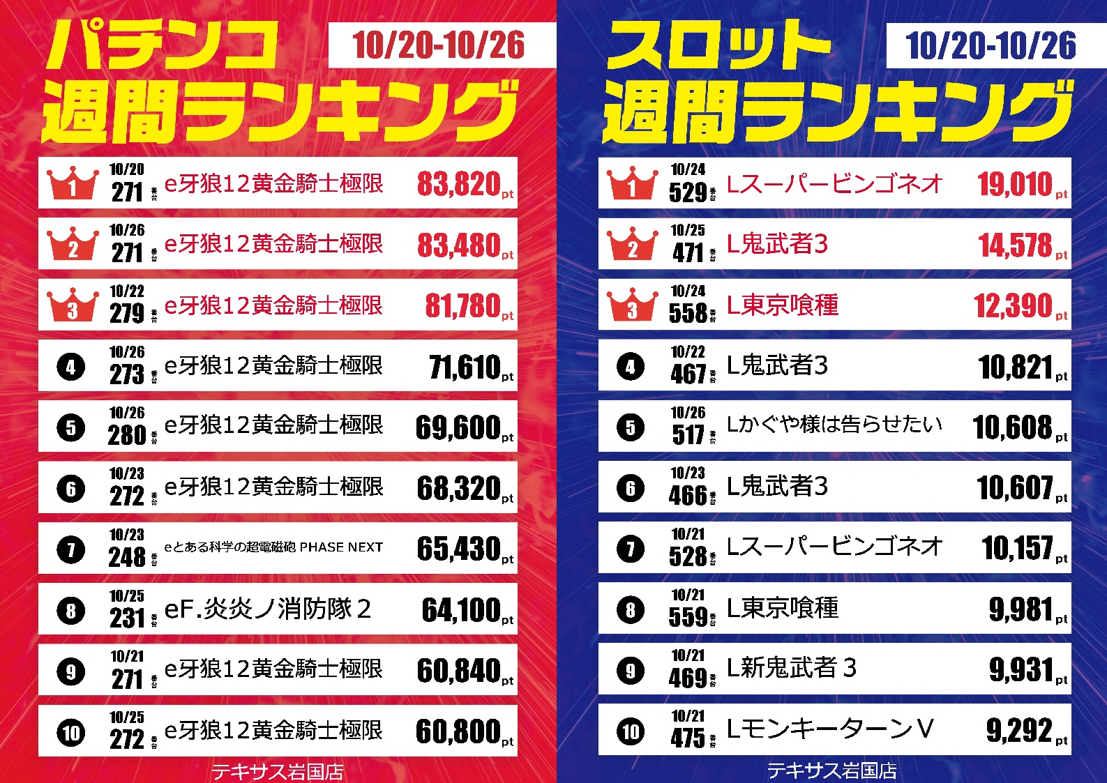 | 稼働台数 | パチンコ320台 / パチスロ240台 |