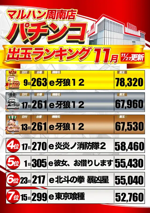 | ホール設備・貸玉料 | |