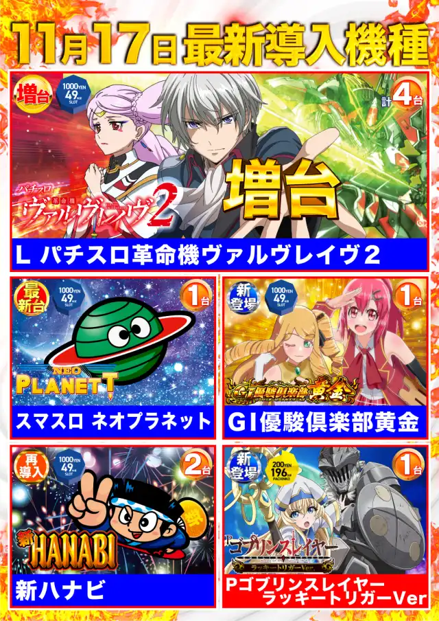| 稼働台数 | パチンコ320台 / パチスロ160台 |