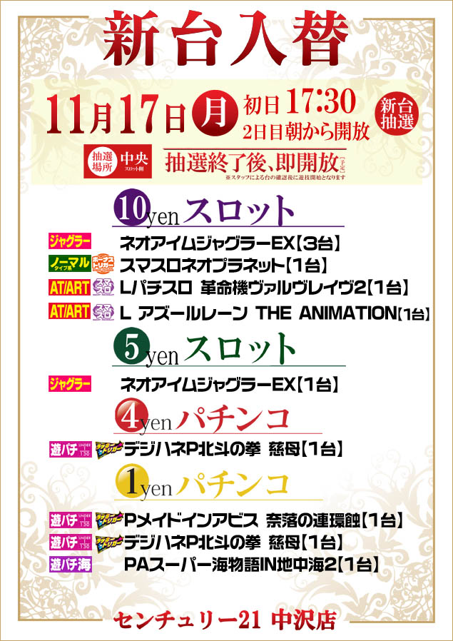| 稼働台数 | パチンコ220台 / パチスロ211台 |