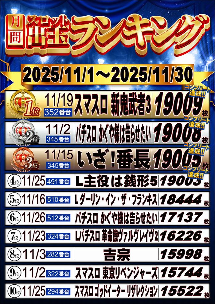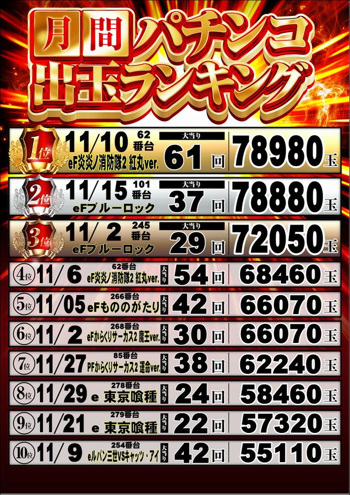 0.5円パチンコ40台1円パチンコ119台,4円パチンコ80台に各台計数機設置。
