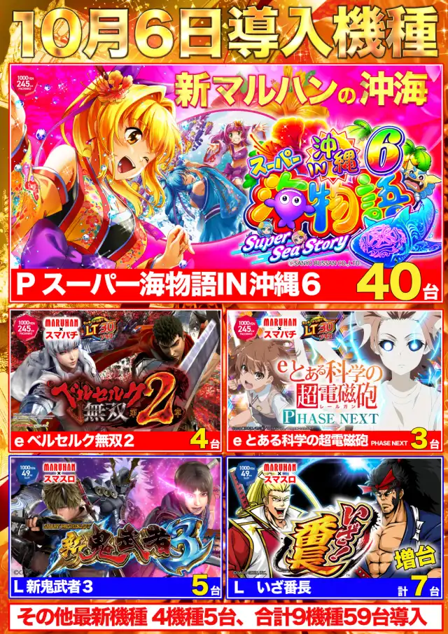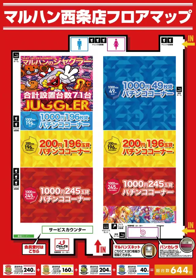 稼働台数 | パチンコ400台 / パチスロ244台 |