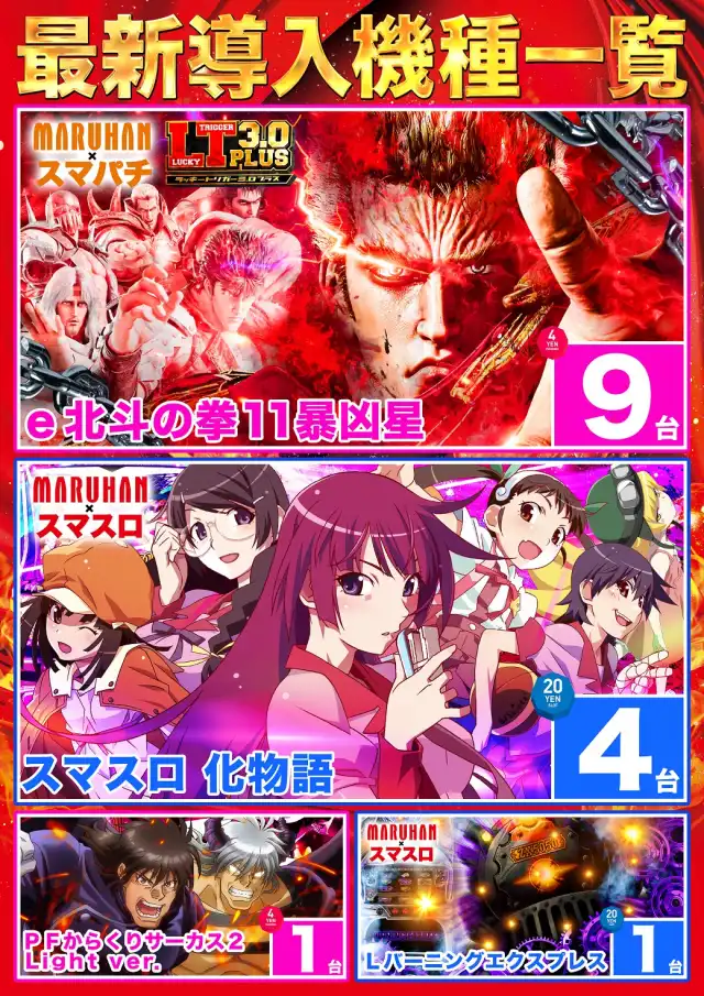 | 稼働台数 | パチンコ448台 / パチスロ259台 |