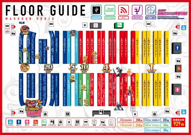 | 稼働台数 | パチンコ528台 / パチスロ401台 |